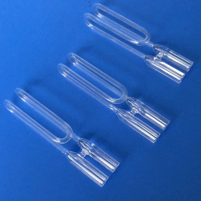Кварцевые U-образные трубки часто широко используются в экспериментальных устройствах, требующих чрезвычайно точного контроля изменения температуры. В этих экспериментах небольшие колебания температуры могут оказать существенное влияние на экспериментальные результаты. Кварцевая U-образная трубка может стабильно выдерживать нагрузки, вызванные изменениями температуры, и не претерпевает значительных изменений физических или химических свойств из-за изменений температуры, что обеспечивает надежные гарантии точного проведения экспериментов.