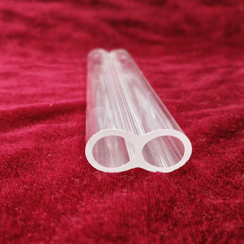В двойной трубке из прозрачного кварцевого стекла в качестве основного сырья используется диоксид кремния высокой чистоты с содержанием SiO₂, превышающим 99,9%, и чрезвычайно низким содержанием примесей, что обеспечивает долговременную стабильность материала из источника. Он имеет высокую точность геометрических размеров и равномерную толщину стенок труб, что соответствует строгим требованиям точной обработки и сложным условиям труда, а также обеспечивает надежную основу для эффективной работы оборудования.